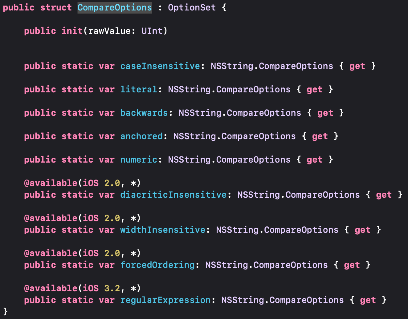 원래 해당 옵션의 풀네임은 NSString.CompareOptions.caseInsensitive 이건데,