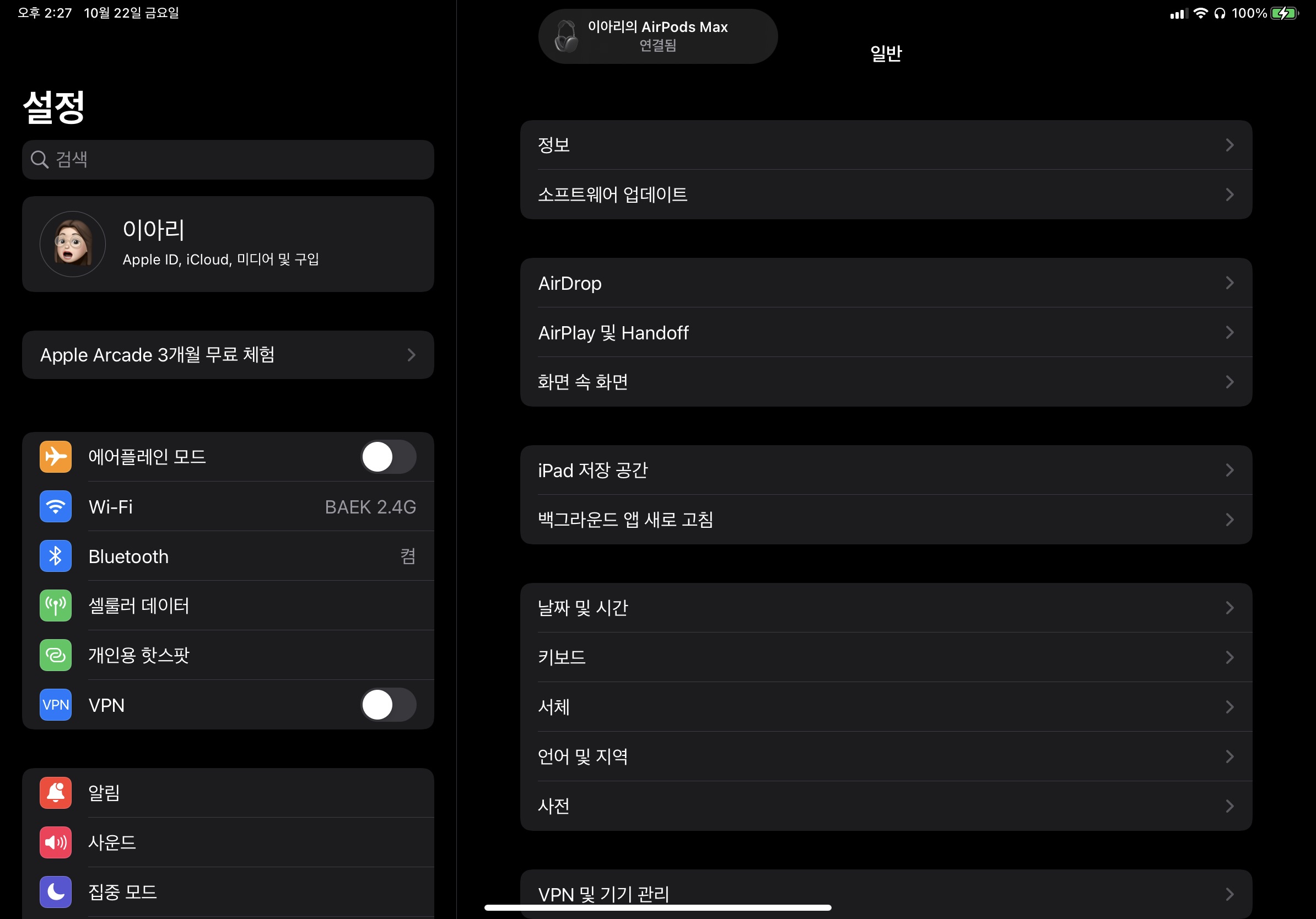 - 아이패드 설정에서 볼 수 있는 화면이 스플릿 뷰 컨트롤러이다.