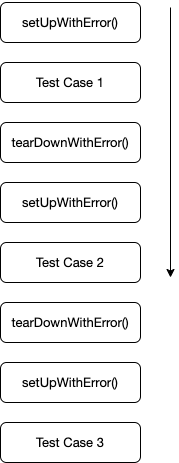 각각의 test 실행이 끝난 후마다 호출되는 메서드. 보통 setUpWithError()에서 설정한 값들을 해제할 때 사용된다.