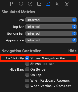 - 우측 Inspector에서 Shows Navigation Bar 체크를 해제해준다.