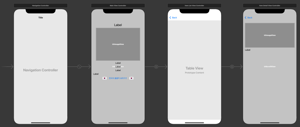 - ViewController 간 연간 관계를 한눈에 볼 수 있다